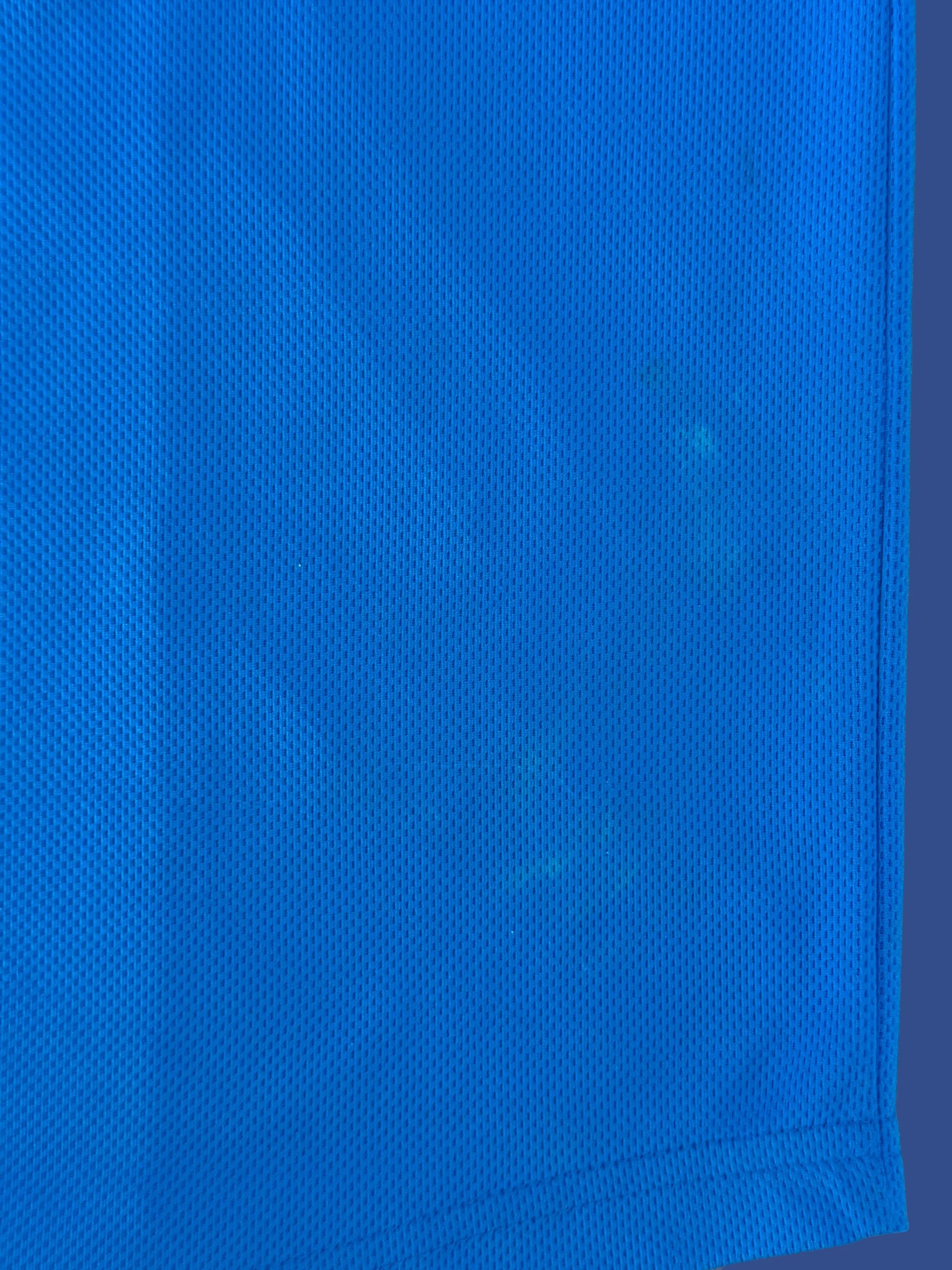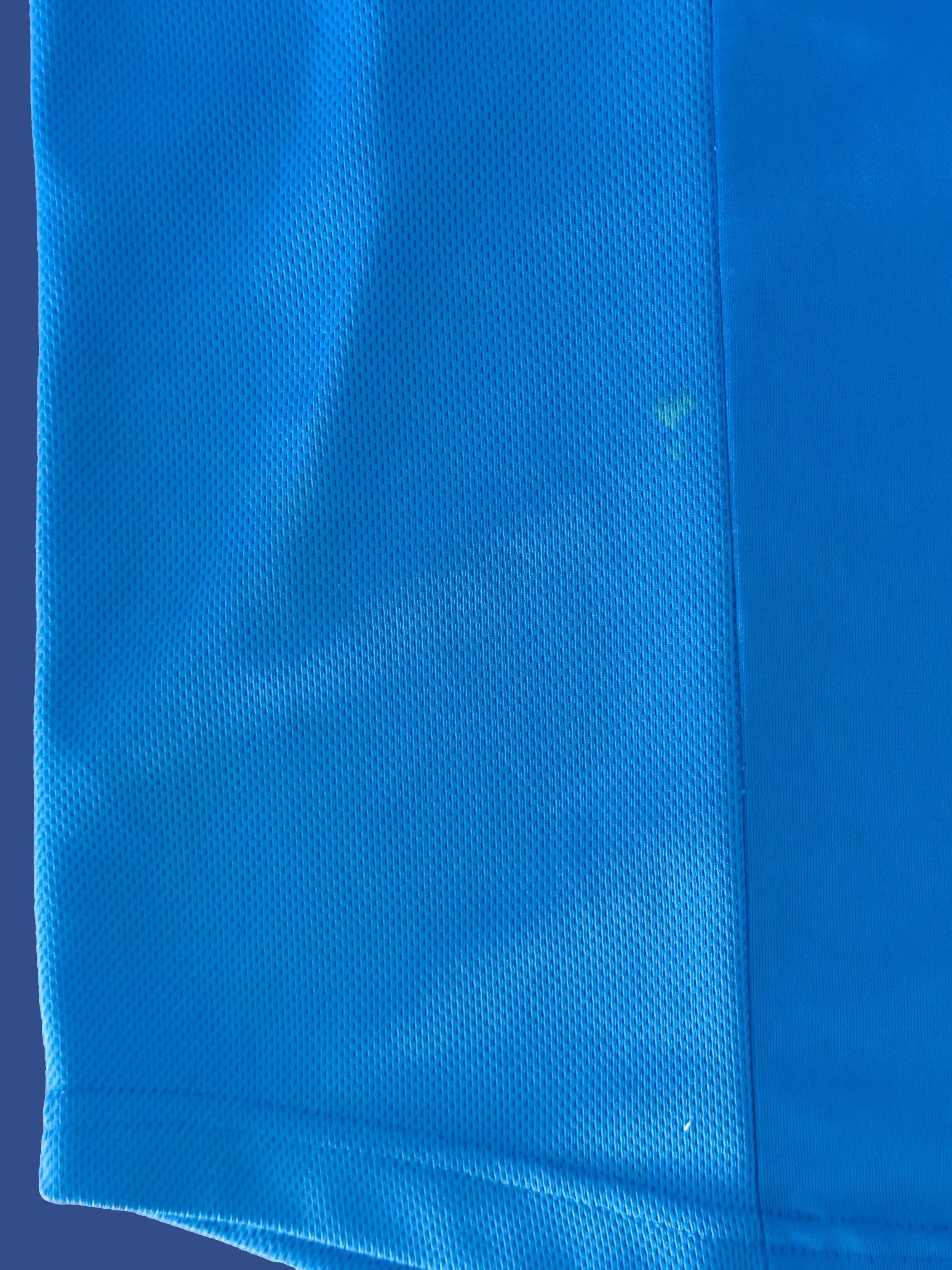 It shows some solid signs of wear with some spotting/staining on the left-hand side, along with what appears to be other staining (likely grass) that has faded on the right side of the shirt on the front and back
