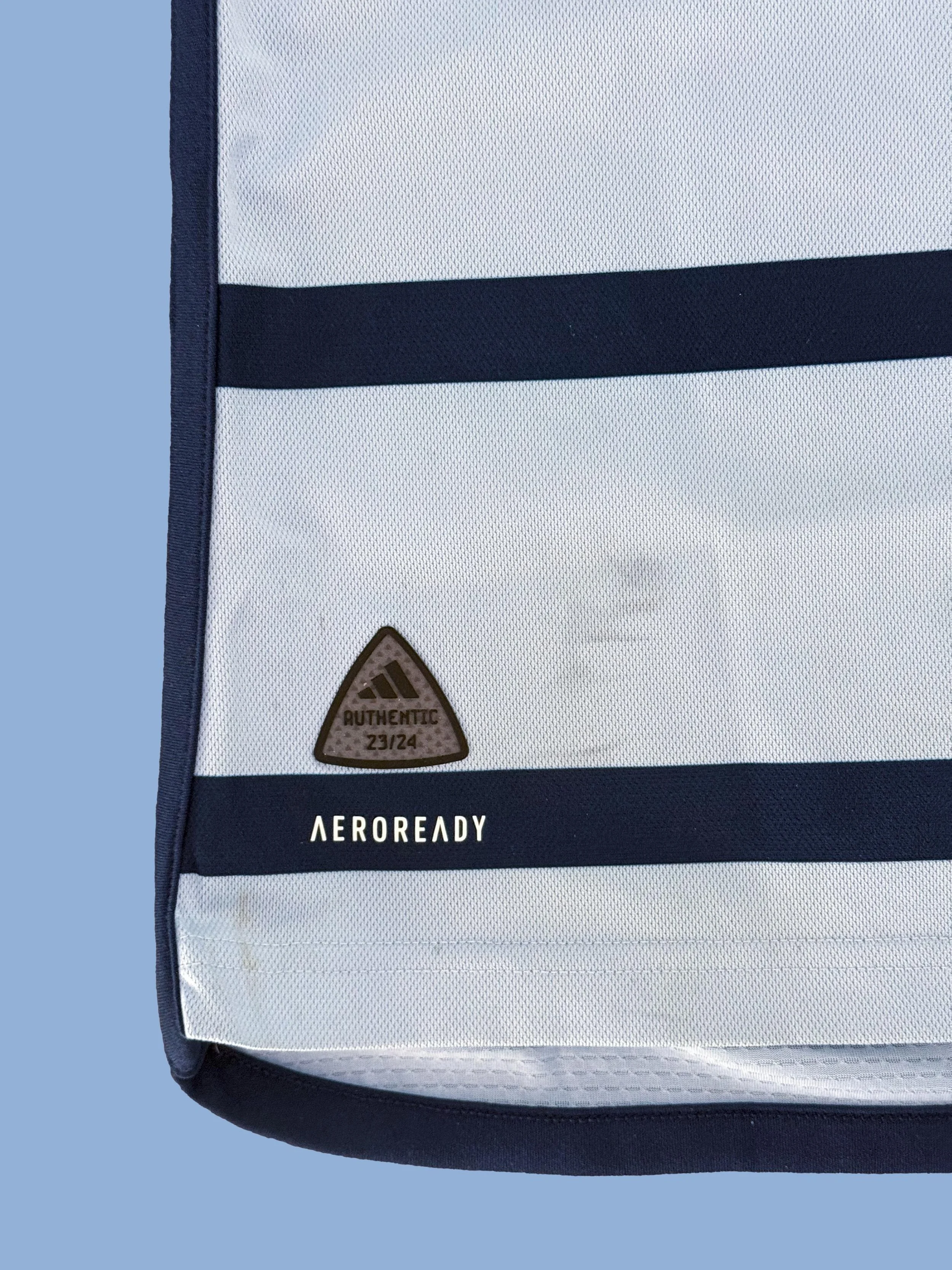 The back lower left hem shows the most notable wear with a grass stain that is photomatched to Erik Thommy celebrating his 60th minute goal that temporarily tied the match