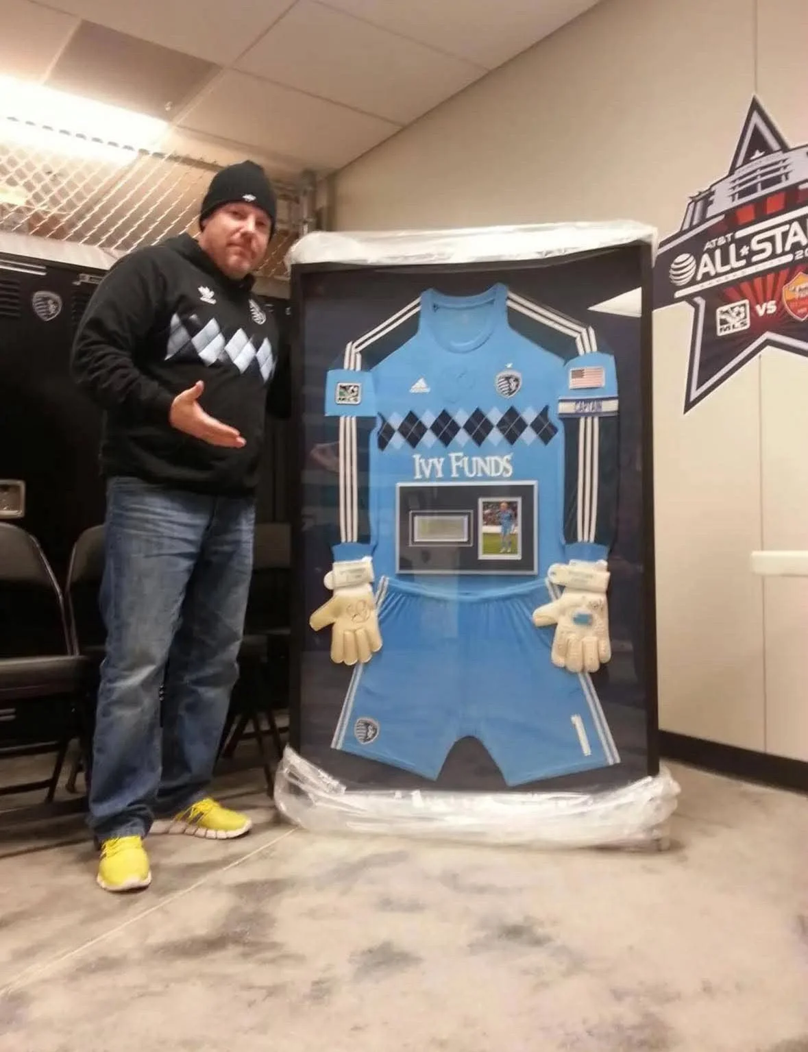 It also featured a pair of Jimmy’s gloves and a plaque noting the date of the game, the opponent, and that it was the debut game of the argyle kits