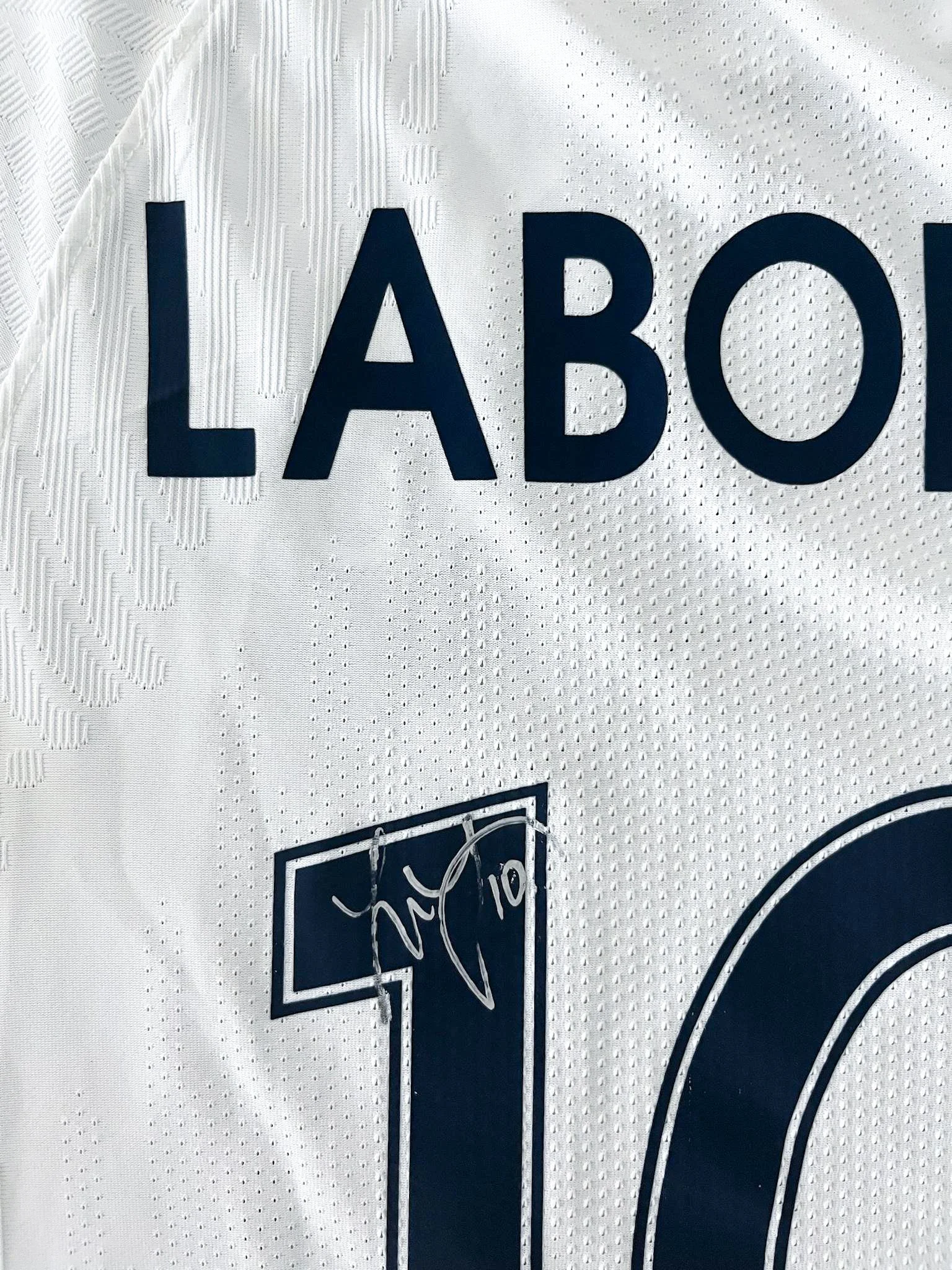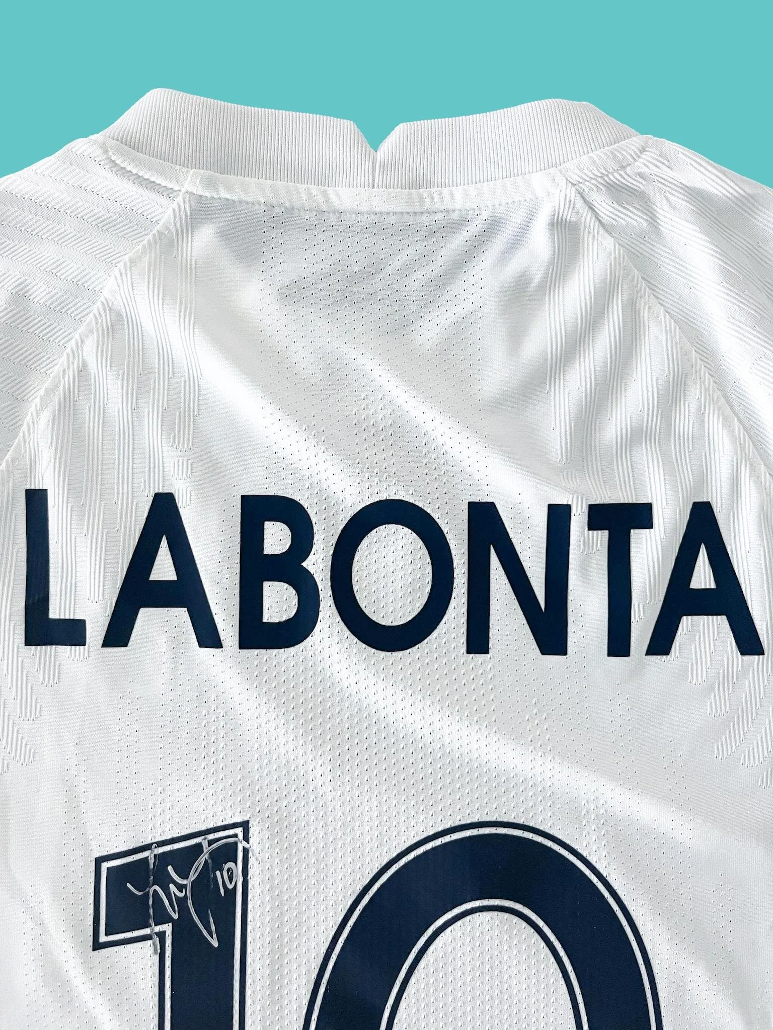 LaBonta's shirt has some signs of use and features her signature on the back numbers.
